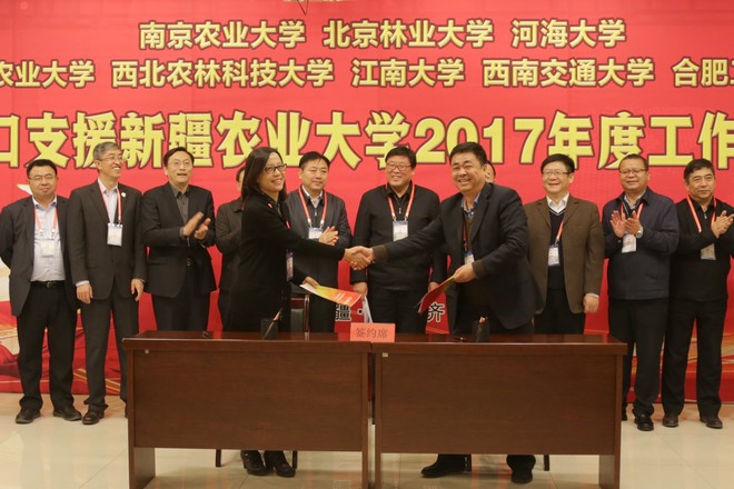 此次年会共签署了12项协议,其中我校与新疆农业大学签署了《对口支援战略合作框架协议》《党建与产学研共建协议》等2项协议。