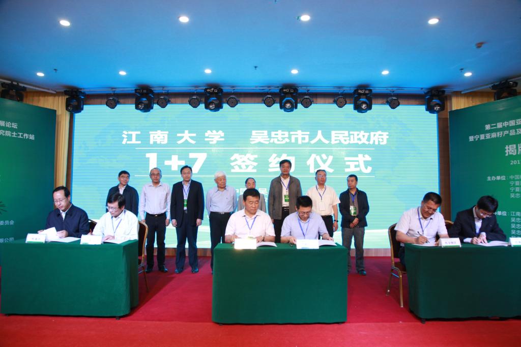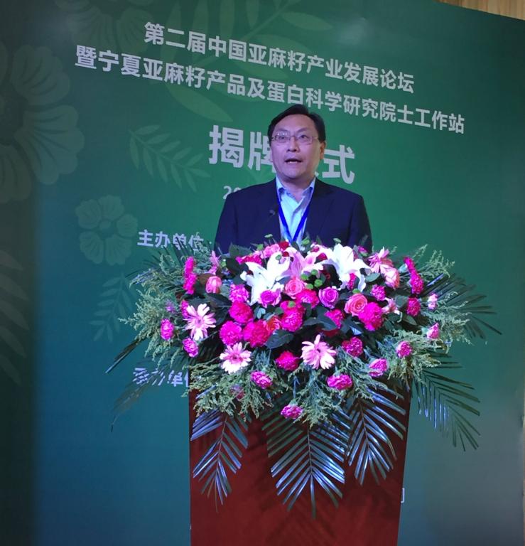 5月26日,“第二届中国亚麻籽产业发展论坛暨宁夏亚麻籽产品及蛋白研究院士工作站揭牌仪式”在宁夏回族自治区吴忠市隆重举行。该工作站为中国工程院院士陈君石牵头创建,由我校食品学院王兴国教授担任主任。副校长吴正国率校长办公室(地方服务与合作办公室)、产业技术研究院、食品学院、生物工程学院、纺织服装学院、机械工程学院等部门负责人及教师出席活动。