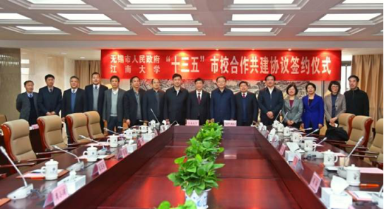 江南大学作为无锡地区唯一的教育部直属重点建设高校,在扎根本地独立办学近六十年的历史上,早已与无锡这座城市水乳交融、唇齿相依。近年来,无锡市人民政府与江南大学签署合作共建协议,市政府安排专项资金,调动优质资源,与江南大学先后共建了物联网工程学院、医学院以及梁溪发展研究院、开放创新设计研究院等平台,市校合作更趋制度化,共建成果更显多元化。在共建机制的带动下,江南大学已逐步发展成为一所特色鲜明的、在国内外具有较强影响力的综合性高水平大学。相信此次“十三五”市校合作共建签约,定将开启双方深度融合、协调发展、互惠共赢的新一轮帷幕。