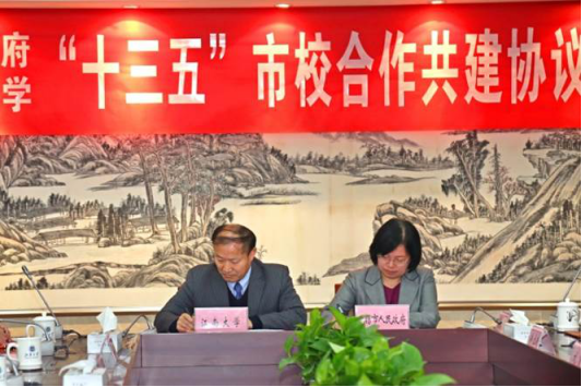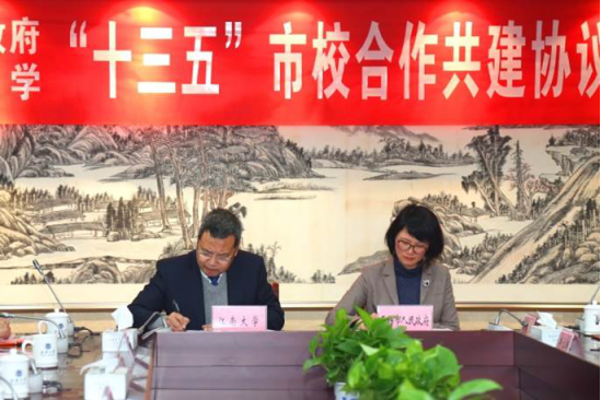 汪泉市长与陈坚校长签署《“十三五”市校合作共建协议》